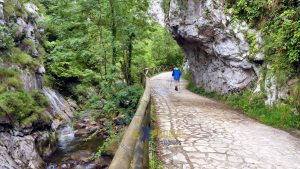 Aunque la mañana se presentaba un poco nubosa, y con cierta llovizna, decidimos partir desde Soto de Agues por una rutita de muy fácil andadura, y de gran belleza, la cual se ha convertido en uno de los elementos emblemáticos del Parque, además de ser declarado Monumento Natural en 2001. Baja dificultad, con unos 14 km de ida y vuelta (4-5h), entre las angosturas del río Alba y frondosos castañedos y algún que otro roble.