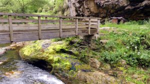 Fue declarada monumento natural en el año 2003. Se trata de una cueva de origen kárstico de unos 200 metros de longitud, horadada y atravesada por el río Nalón. Podemos observar la entrada del río en la roca caliza del puente Colorau, y la salida, en el puente Deboyu.